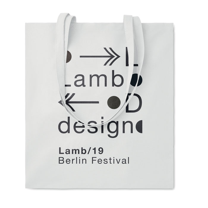Einkaufstasche mit langen Tragegriffen. Baumwolle 180 g/m². In bunten Farben.Material: BaumwolleMaße: 38x42 cmGewicht: 0.069 kgVeredelung: Bestickung, Bedruckung, BeflockungHandling/Farbcodes: /03, 04, 05, 06, 07, 08, 10, 12, 37, 38, 48, 15, 60, 85, 21, 41, 42, 65Druckposition: FRONTDruckmaße: 300 x 300 mmDrucktechniken: S2, T1, TRDruckposition: BACKDruckmaße: 300 x 300 mmDrucktechniken: TR, S2, T1Druckposition: FRONT TD1Druckmaße: 300 x 260 mmDrucktechniken: TD1Druckposition: BACK TD1Druckmaße: 300 x 260 mmDrucktechniken: TD1Druckposition: EMBROIDERYDruckmaße: 180 x 180 mmDrucktechniken: E