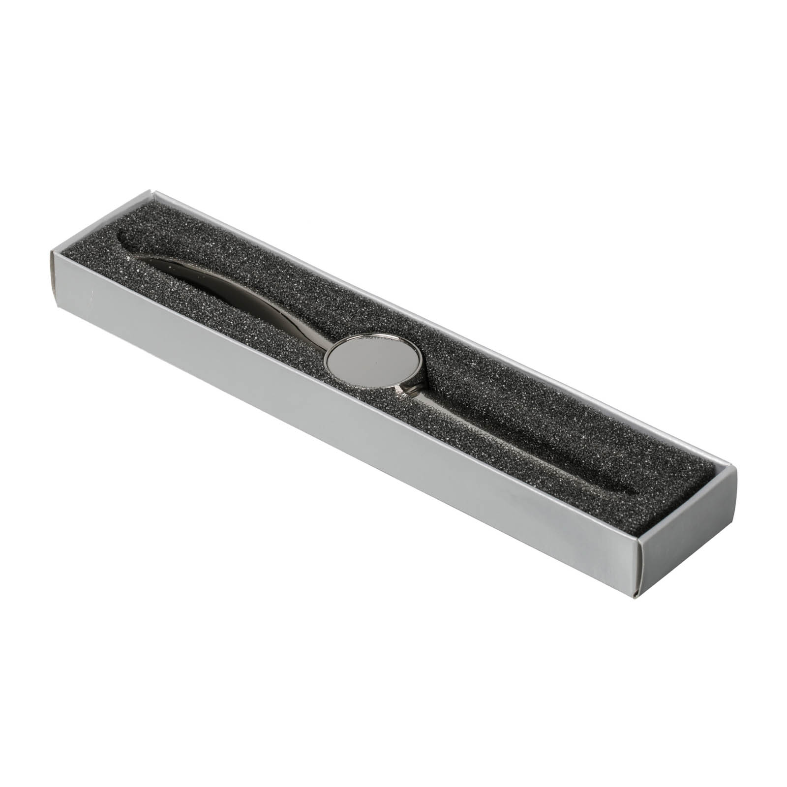 Der drehbare Brieföffner aus hochwertig verchromtem Metall lässt sich mittig mit einem effektvollen Doming oder Lasergravur veredeln.