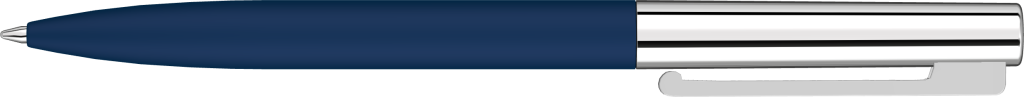 Metall-Drehkugelschreiber mit Softtouch-Schaft, glanzverchromtem Metalloberteil und gefederter Metallclip.