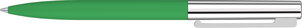 Metall-Drehkugelschreiber mit Softtouch-Schaft, glanzverchromtem Metalloberteil und gefederter Metallclip.