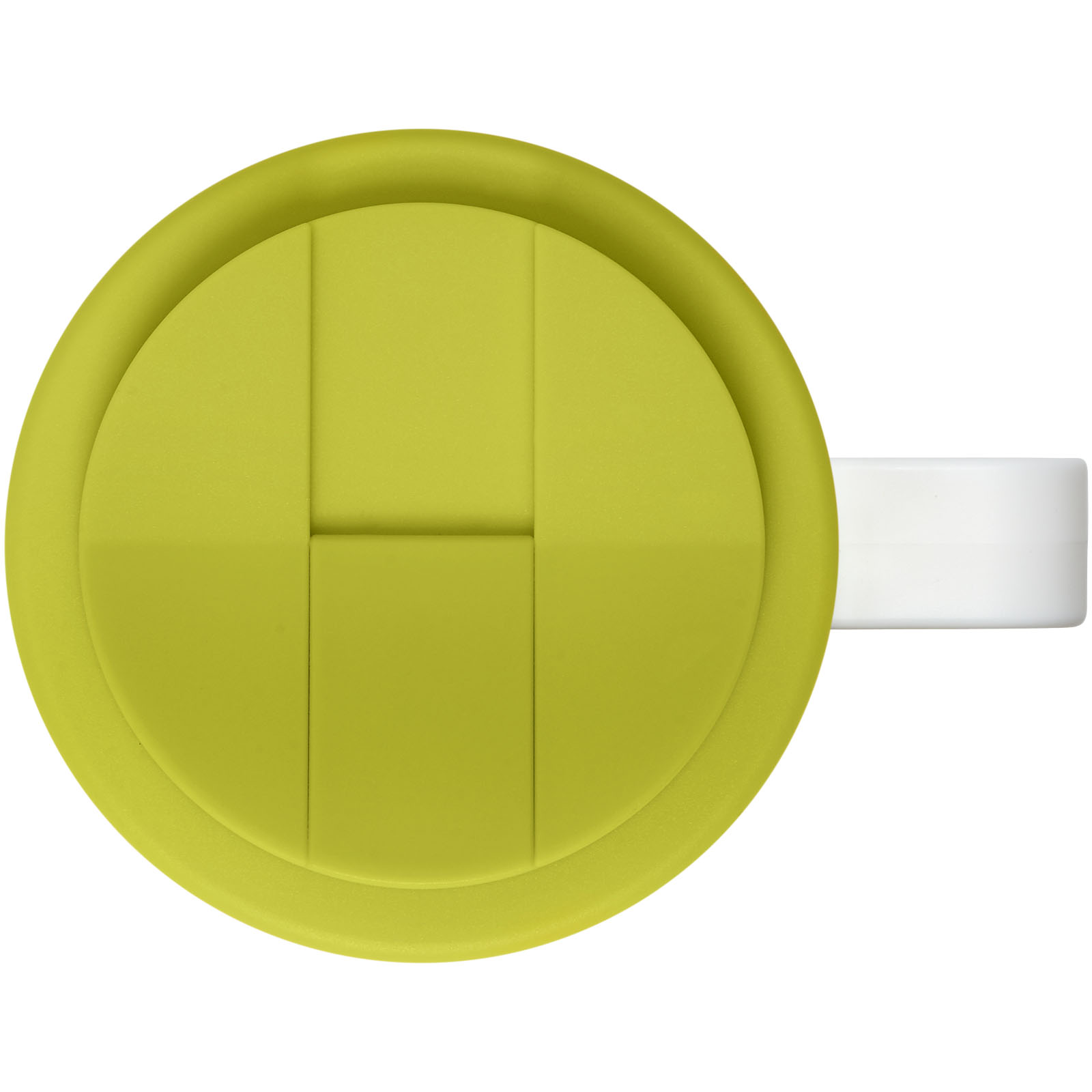 Doppelwandiger Isolierbecher mit aufschraubbarem, auslaufsicherem Deckel. Die äußere Schicht des Bechers ist aus recyceltem Kunststoff hergestellt. Der Becher verfügt über ein vollfarbiges, umlaufendes Design, das an das Produkt angepasst ist – für Strapazierfähigkeit und Haltbarkeit. EN12875-1 konform, spülmaschinen- und mikrowellenfest. Trinköffnung mit Clip verhindert auslaufen und schließt ohne Silikon. Das Fassungsvermögen beträgt 350 ml. Mischen und kombinieren Sie Farben, um Ihren perfekten Becher zu kreieren. Hergestellt in Großbritannien. Verpackt, in einer weißen Geschenkschachtel. BPA-frei. EN12875-1-konform, spülmaschinen- und mikrowellengeeignet.