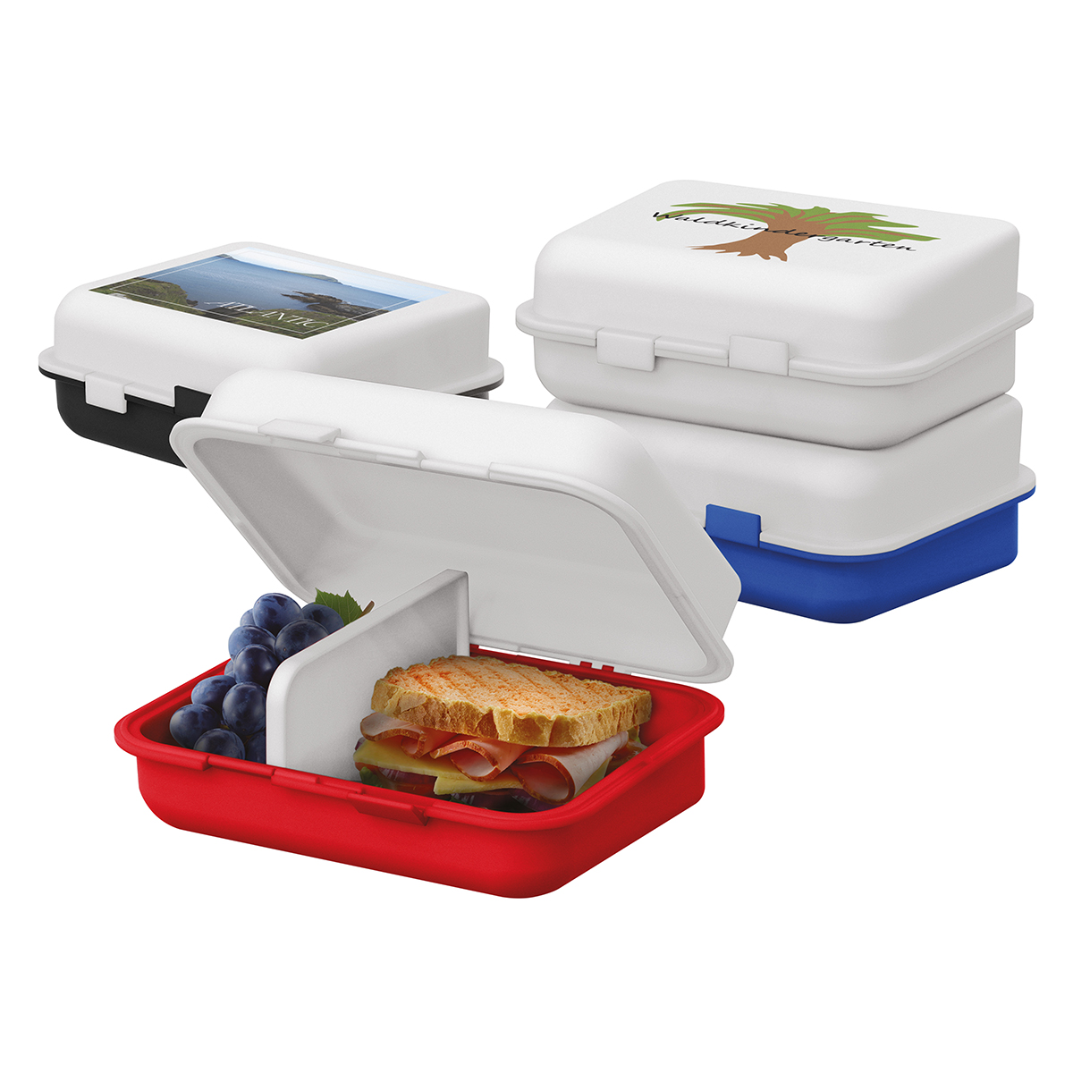Die ideale Box für das Pausenbrot – mit Klickverschluss sicher verschließbar. In vielen Farben erhältlich und optimal für die Veredelung per IMould-Verfahren geeignet.Material: KunststoffMaße: 125 x 85 x 40 x Ø: 0,00 mmGewicht: 65 gDruckmöglichkeitenPosition 1: Oben mittigDruckart: SiebdruckDruckgruppe: DBMaximale Farben: 5Breite: 100 mmHöhe: 57 mmPosition 2: Unten mittigDruckart: SiebdruckDruckgruppe: DBMaximale Farben: 5Breite: 70 mmHöhe: 60 mm