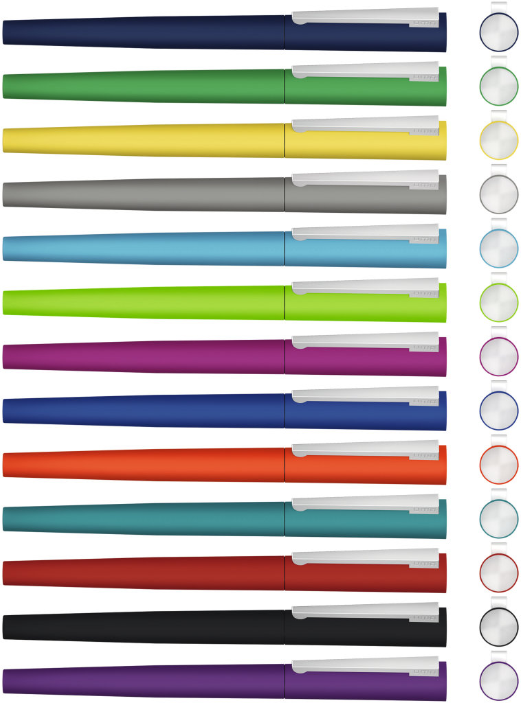 Metall-Rollerball mit Softtouch-Gehäuse, gefederter Metallclip und Stopfen matt verchromt. Hier geht´s zum [[https://www.youtube.com/watch?v=7uJLytypJWI|Video]].Druckbereich: In Clipverlängerung 40mm x 7mm Lasergravur (L), gegenüber vom Clip 40mm x 7mm Lasergravur (L), seitlich vom Clip 40mm x 7mm Lasergravur (L), in Clipverlängerung 45mm x 7mm Tampondruck (GT), gegenüber vom Clip 45mm x 7mm Tampondruck (GT), seitlich vom Clip 45mm x 7mm Tampondruck (GT), auf der Kappe/auf dem Oberteil 35mm x 7mm Tampondruck (GT), auf der Kappe/auf dem Oberteil 35mm x 7mm Lasergravur (L), auf dem Stopfen 10mm x 10mm Lasergravur (L), auf dem Stopfen 11mm x 11mm Doming (D), in Clipverlängerung 40mm x 7mm Einzelnamensgravur (EL), gegenüber vom Clip 40mm x 7mm Einzelnamensgravur (EL), seitlich vom Clip 40mm x 7mm Einzelnamensgravur (EL), auf der Kappe/auf dem Oberteil 35mm x 7mm Einzelnamensgravur (EL), auf dem Stopfen 10mm x 10mm Einzelnamensgravur (EL)
