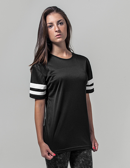 Build Your Brand Ladies´ Mesh Stripe Tee White/Black XS