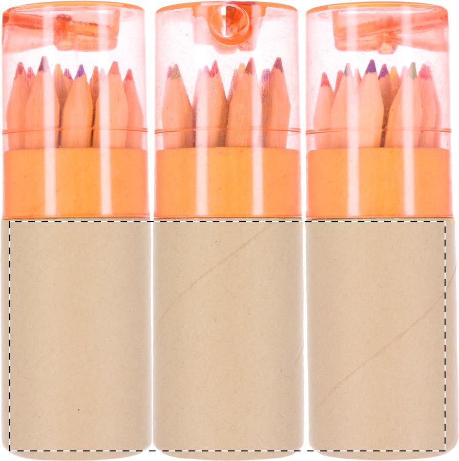12 Buntstifte mit Anspitzer in rundem Papp-Etui.Maße: ø35×103 mmSchreibgerät-Typ: BleistiftMaterial: Holz, Karton, KunststoffVeredelungsposition 1: VorderseiteTechnologie: TampondruckMaximale Farben: 4Durchmesser: 0Druckcode: P1Veredelungsposition 2: RundumTechnologie: Vinyl-AufkleberDurchmesser: 0Druckcode: VS