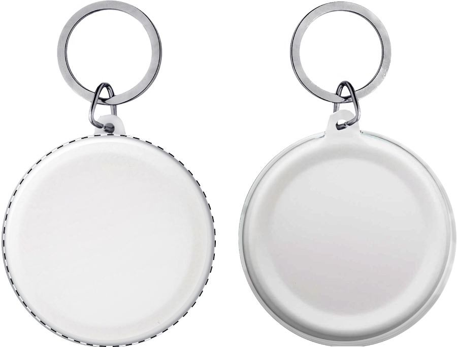 Großer Button-Schlüsselanhänger mit individuellem Papiereinleger. Der Preis ist inkl. Digitaldruck. Mindestmenge: 100 Stk.