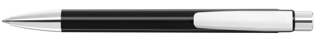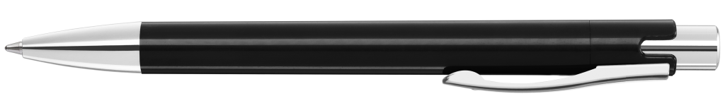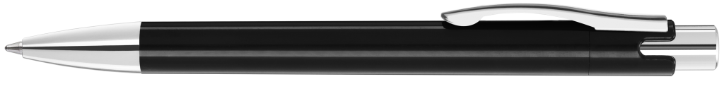 Druckkugelschreiber mit gedeckt glänzendem Gehäuse, schwerer Metallspitze, Metalldrücker und Metallclip glanzverchromt.
