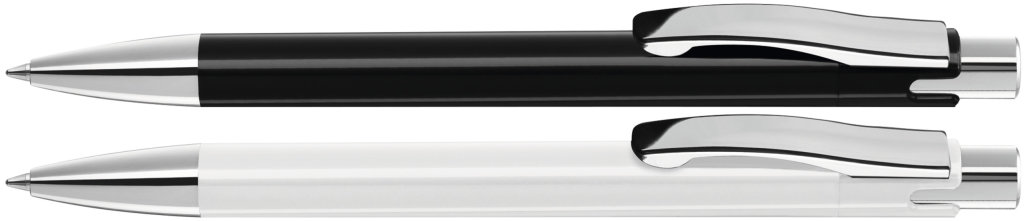 Druckkugelschreiber mit gedeckt mattem Gehäuse, breitem Bogenclipdrücker und silberner Spitze glanzverchromt.Druckbereich: In Clipverlängerung 45mm x 27mm Siebdruck (S), seitlich vom Clip 70mm x 13mm Siebdruck (S), gegenüber vom Clip 70mm x 13mm Siebdruck (S), auf dem Clip 35mm x 6mm Tampondruck (T)