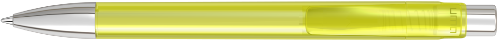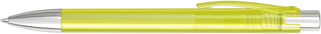 Druckkugelschreiber mit transparent glänzendem Gehäuse, Metalldrücker und schwerer Metallspitze glanzverchromt.Druckbereich: Auf dem Clip 25mm x 6mm Tampondruck (T), in Clipverlängerung 40mm x 20mm Siebdruck (S), gegenüber vom Clip 60mm x 13mm Siebdruck (S), seitlich vom Clip 60mm x 13mm Siebdruck (S)