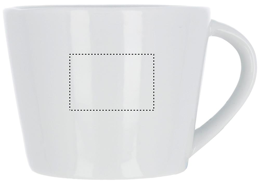Klassische Kaffeetasse aus Keramik. Füllmenge: 300 ml.Material: Keramik SteingutMaße: Ø8x9,5 cmGewicht: 0.329 kgFarbe: WeißVeredelung: Bestickung, Bedruckung, BeflockungHandling/Farbcodes: B/06Druckposition: ROUNDSCREENDruckmaße: 130 x 80 mmDrucktechniken: RS6Druckposition: RIGHT HANDEDDruckmaße: 45 x 60 mmDrucktechniken: P6Druckposition: LEFT HANDEDDruckmaße: 45 x 60 mmDrucktechniken: P6Druckposition: MUG TCDruckmaße: 200 x 70 mmDrucktechniken: TCDruckposition: INSIDE TCDruckmaße: 150 x 20 mmDrucktechniken: TC