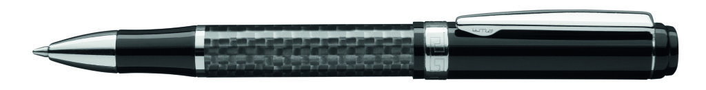 Carbonfaser Metalldrehkugelschreiber mit Metallbeschlägen glanzverchromt.