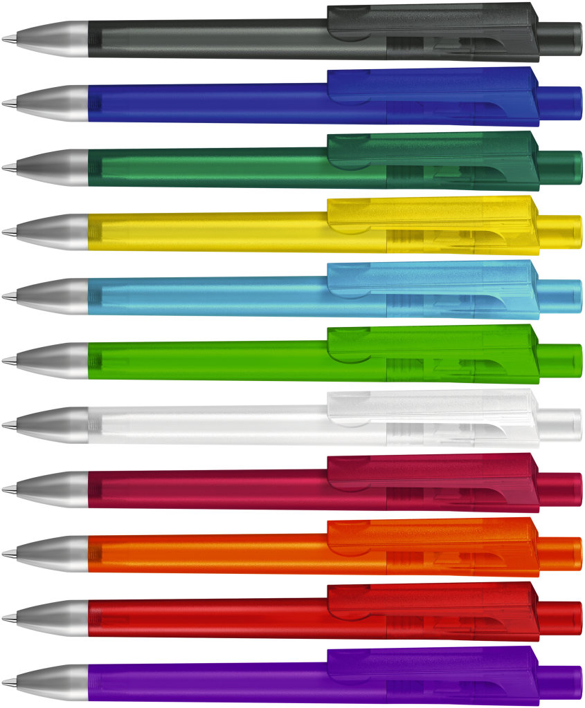 Farbiger Kugelschreiber aus Kunststoff, schwarzschreibend.Maße: ø10×138 mmSchreibgerät-Typ: KugelschreiberSchreibgerät-Mechanik: DruckmechanikSchreibfarbe: SchwarzMinentyp: Normale MineLinienstärke: 1 mmMaterial: KunststoffVeredelungsposition 1: Korpus - rechts vom ClipTechnologie: TampondruckMaximale Farben: 4Durchmesser: 0Druckcode: P0Technologie: TampondruckMaximale Farben: 1Durchmesser: 0Druckcode: P1Technologie: UV LED DruckDurchmesser: 0Druckcode: UVAVeredelungsposition 2: Korpus - links vom ClipTechnologie: TampondruckMaximale Farben: 4Durchmesser: 0Druckcode: P0Technologie: TampondruckMaximale Farben: 1Durchmesser: 0Druckcode: P1Technologie: UV LED DruckDurchmesser: 0Druckcode: UVAVeredelungsposition 3: KlipTechnologie: TampondruckMaximale Farben: 4Durchmesser: 0Druckcode: P0Veredelungsposition 4: Korpus - in Verlängerung vom ClipTechnologie: TampondruckMaximale Farben: 4Durchmesser: 0Druckcode: P0