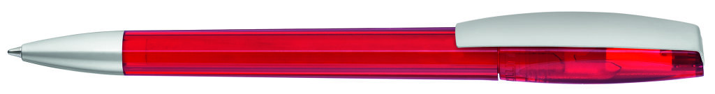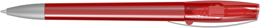 Druckkugelschreiber mit gedeckt glänzendem Gehäuse, transparent glänzendem Innenschaft und Clip. Spitze und Drücker in silber glänzend.Druckbereich: Auf dem Clip 30mm x 7mm Tampondruck (T), in Clipverlängerung 45mm x 20mm Siebdruck (S), gegenüber vom Clip 45mm x 20mm Siebdruck (S), seitlich vom Clip 45mm x 20mm Siebdruck (S)