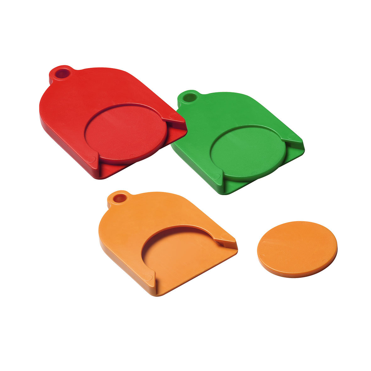 Einfacher Einkaufswagenchip aus Kunststoff mit einem Loch in der Mitte.Material: KunststoffMaße: 0 x 0 x 5 x Ø: 23,00 mmGewicht: 1 gDruckmöglichkeitenPosition 1: Auf RückseiteDruckart: TampondruckDruckgruppe: TAMAMaximale Farben: 5Breite: 7 mmHöhe: 15 mmPosition 2: HintenDruckart: UV-DigitaldruckDruckgruppe: UAMaximale Farben: 5Höhe: 15 mm