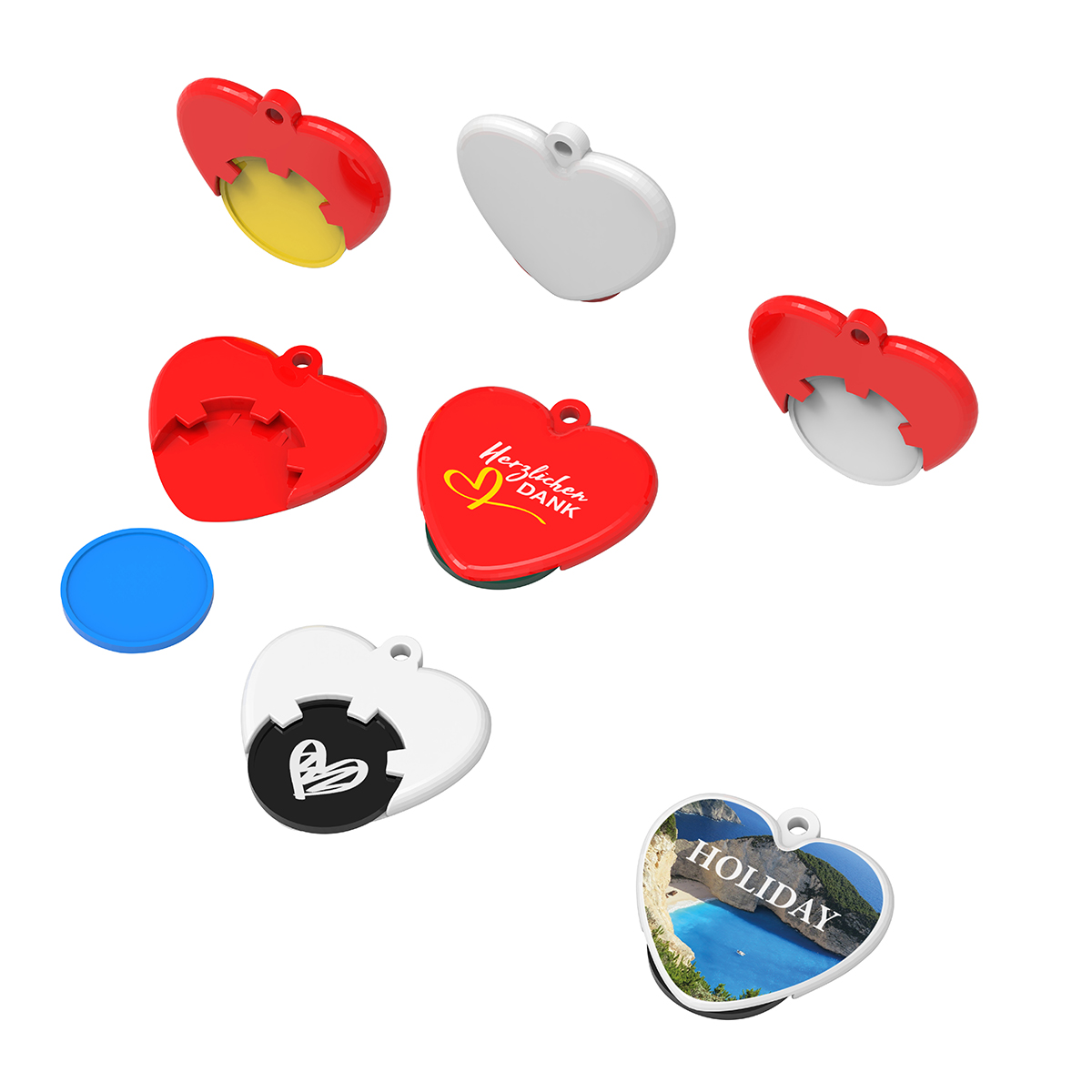 Suchbegriffe: Einkaufswagenchip, Chip, Chiphalter mit Chip, Herzform, Schlüsselanhänger