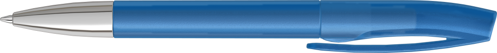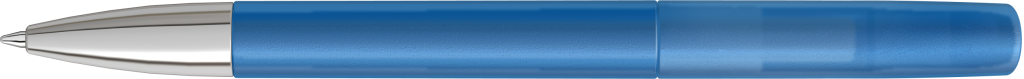 Drehkugelschreiber mit transparent gefrostetem Gehäuse und silberner Spitze glanzverchromt.