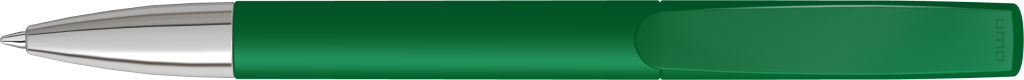 Drehkugelschreiber mit matt gedecktem Gehäuse und silberner Spitze glanzverchromt.