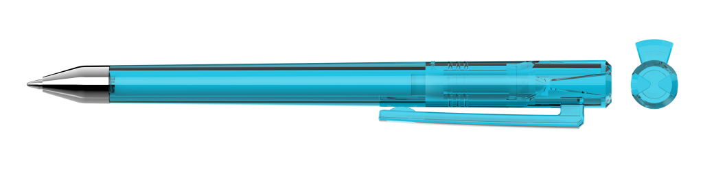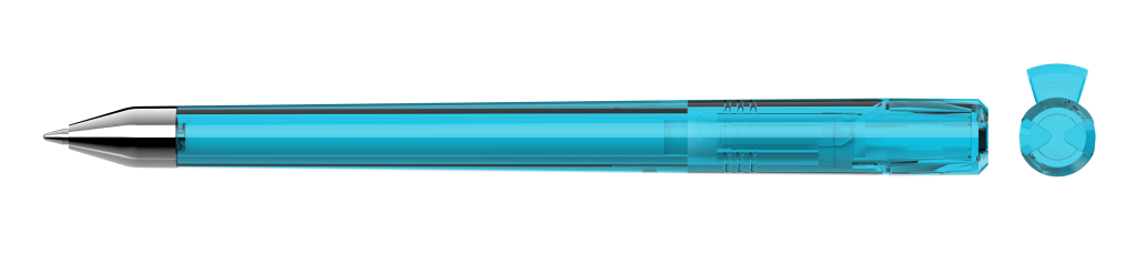 Drehkugelschreiber mit transparent glänzendem Gehäuse und Oberteil mit zwei farbigen Stopfen in gedeckt oder transparent glänzend. Schwere Metallspitze glanzverchromt. BlackForestPen Designed in Deutschland, gefertigt in der Schweiz, zusammengefügt und veredelt im Schwarzwald.