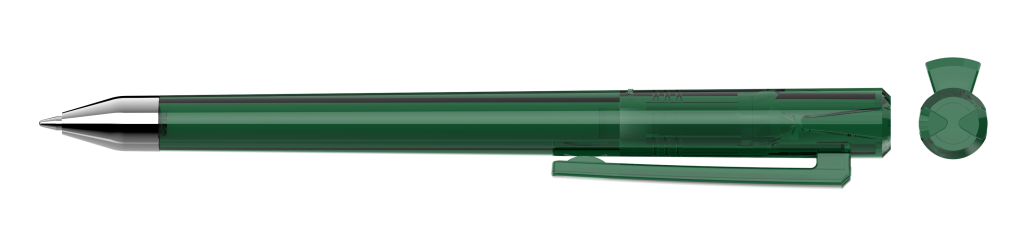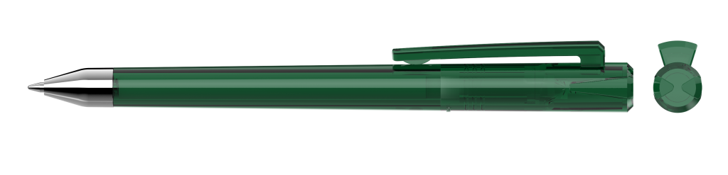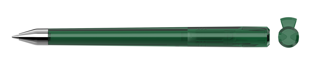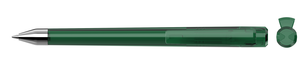 Drehkugelschreiber mit transparent glänzendem Gehäuse und Oberteil mit zwei farbigen Stopfen in gedeckt oder transparent glänzend. Schwere Metallspitze glanzverchromt. BlackForestPen Designed in Deutschland, gefertigt in der Schweiz, zusammengefügt und veredelt im Schwarzwald.Druckbereich: Auf dem Clip 40mm x 6mm Tampondruck (T), in Clipverlängerung 50mm x 20mm Siebdruck (S), gegenüber vom Clip 50mm x 20mm Siebdruck (S), seitlich vom Clip 50mm x 20mm Siebdruck (S), auf der Kappe/auf dem Oberteil 25mm x 7mm Tampondruck (T)