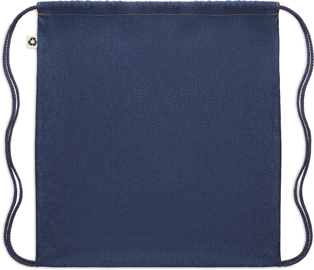Denim Beutel mit Kordelzug. 50% recycelter Baumwoll-Denim und 50% Baumwolle. 250 g/m².