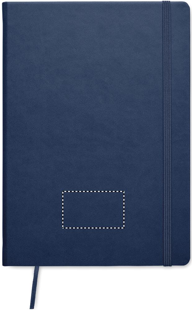 DIN A5 Notizbuch mit Hard Cover aus PU. 100 Blatt (200 Seiten) liniertes Recyclingpapier (80 g/m²). Farblich passendes elastisches Verschlussband und Lesebändchen. Hergestellt in der EU.Material: Recyceltes PapierMaße: 22x15,5 cmGewicht: 0.34 kgVeredelung: Bestickung, Bedruckung, BeflockungHandling/Farbcodes: A/03, 04, 05, 06Druckposition: FRONTDruckmaße: 120 x 190 mmDrucktechniken: B, S2, T1, TRDruckposition: FRONT PDDruckmaße: 152 x 215 mmDrucktechniken: PD4Druckposition: BACKDruckmaße: 90 x 190 mmDrucktechniken: B, S2, T1, TRDruckposition: BACK PDDruckmaße: 110 x 210 mmDrucktechniken: PD4Druckposition: FRONT PADDruckmaße: 50 x 30 mmDrucktechniken: P3