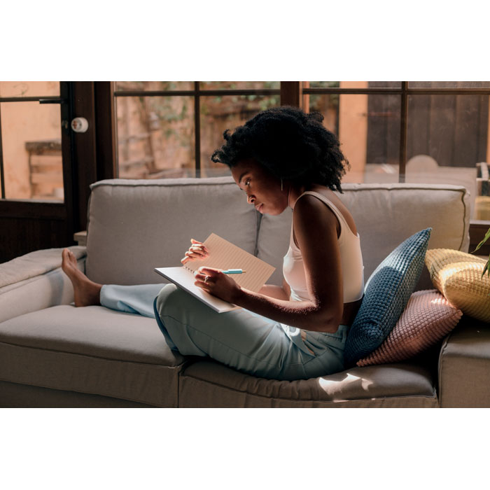 DIN A6 Notizbuch mit Cover aus Pappe. 40 Blatt (80 Seiten) recyceltes Blanko-Papier. Fadenheftung.Material: Recyceltes PapierMaße: 14.5x10x0.5cmGewicht: 0.044 kgFarbe: BeigeVeredelung: Bestickung, Bedruckung, BeflockungHandling/Farbcodes: Z/13Druckposition: FRONT PADDruckmaße: 80 x 40 mmDrucktechniken: P3Druckposition: FRONT SCREENDruckmaße: 80 x 120 mmDrucktechniken: DL, S2Druckposition: BACK PADDruckmaße: 80 x 40 mmDrucktechniken: P3Druckposition: BACK SCREENDruckmaße: 80 x 120 mmDrucktechniken: DL, S2