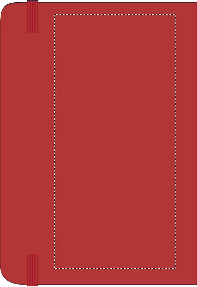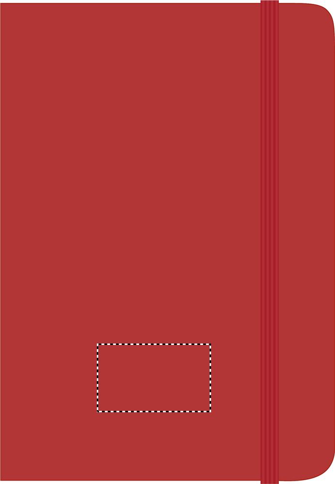 Fester Einband, ca. 80 Blatt kariertes Papier, mit elastischem Verschluss- und LesebandSuchbegriffe: NotizbuchMaße: 140 x 90 x 13 mmGewicht: 104 gMaterial: PVC, PapierVeredelung: Siebdruck, DigitaldruckDruckcodes: S/B (2), D/DBVeredelung 1------------Platzierung: Vorderseite (1)Druckfläche: 70 x 120 mmDruckart: SiebdruckDruckgruppe, Druckcode: B, S/BDruckfarben max.: 2Veredelung 2------------Platzierung: Rückseite (2)Druckfläche: 44 x 120 mmDruckart: SiebdruckDruckgruppe, Druckcode: B, S/BDruckfarben max.: 2Veredelung 3------------Platzierung: Vorderseite (1)Druckfläche: 87 x 137 mmDruckart: DigitaldruckDruckgruppe, Druckcode: DB, D/DB