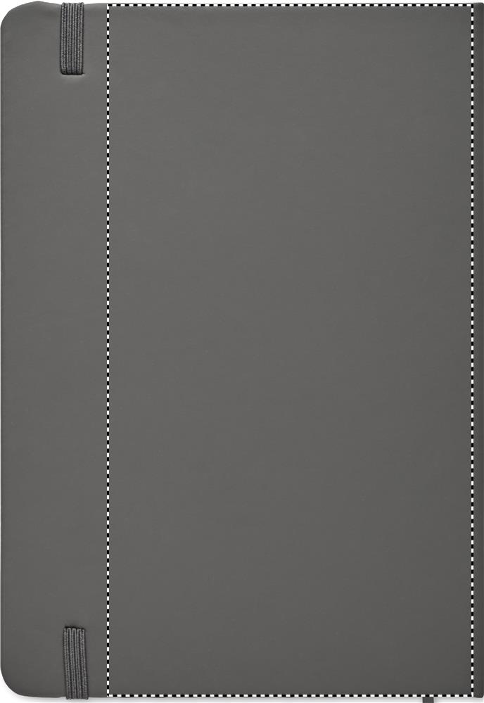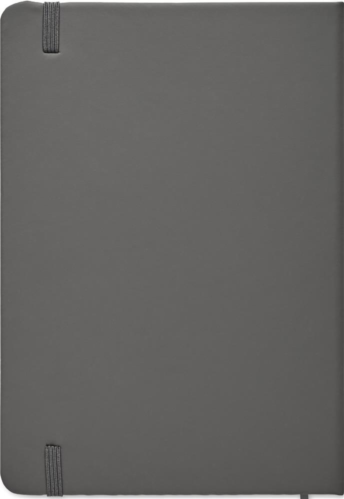 DIN A5 Notizbuch mit gebundenem Hard Cover aus PU. 96 Blatt (192 Seiten) liniertes Recyclingpapier. Elastisches Verschlussband und Lesebändchen.