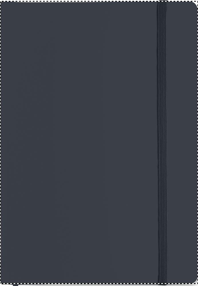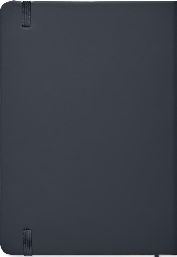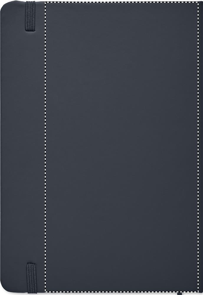 DIN A5 Notizbuch mit gebundenem Hard Cover aus PU. 96 Blatt (192 Seiten) liniertes Recyclingpapier. Elastisches Verschlussband und Lesebändchen.