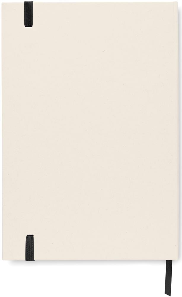 DIN A5 Notizbuch mit Hard Cover aus 70% recyceltem Milchkarton und 30% recyceltem Papier. 80 Blatt (160 Seiten) liniertes Recyclingpapier 80 g/m². Gebunden. Elastisches Verschlussband und Lesebändchen.
