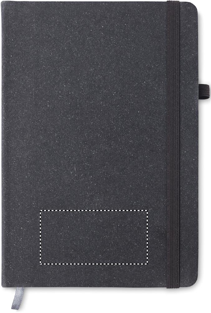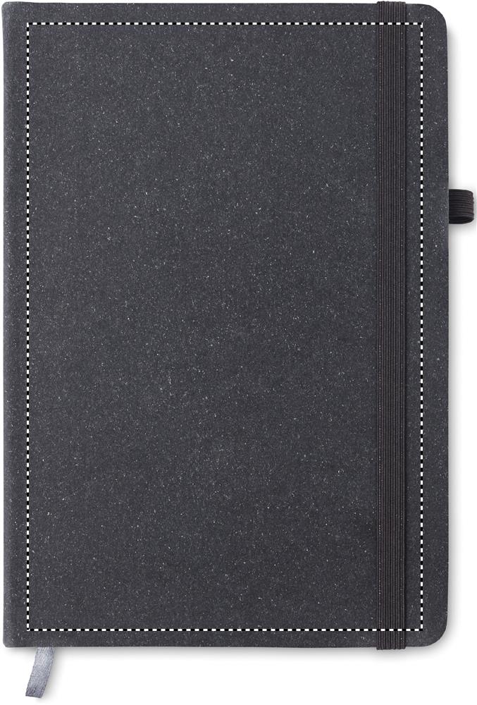 DIN A5 Notizbuch mit Hardcover aus 70% recyceltem Pre-Consumer-Leder und 30% PU-Latex. 80 Blatt (160 Seiten) liniertes Recyclingpapier. Mit farblich passendem elastischen Verschlussband und Stiftschlaufe .Material: Recyceltes PapierMaße: 21x14.5x1.6cmGewicht: 0.266 kgVeredelung: Bestickung, Bedruckung, BeflockungHandling/Farbcodes: Z/01, 03Druckposition: FRONT PADDruckmaße: 80 x 40 mmDrucktechniken: P4, BDruckposition: FRONTDruckmaße: 130 x 200 mmDrucktechniken: S3Druckposition: BACK PADDruckmaße: 80 x 40 mmDrucktechniken: P4, BDruckposition: BACKDruckmaße: 90 x 160 mmDrucktechniken: S3