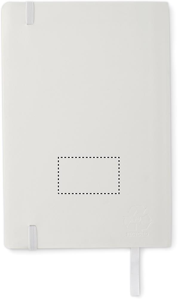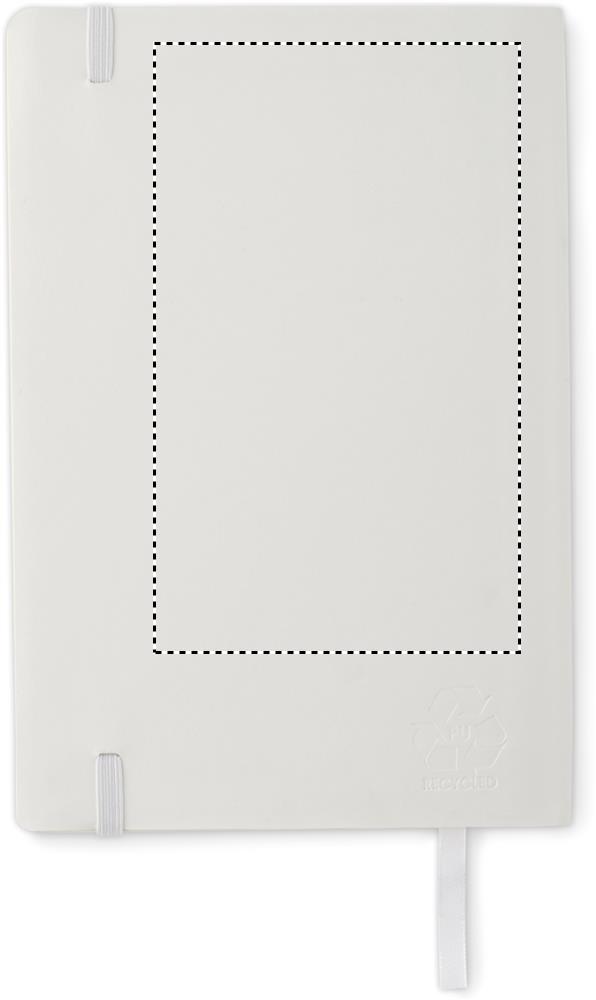 DIN A5 Notizbuch mit gebundenem Soft Cover aus recyceltem PU (81% recyceltes Polyester, 19% PU). 80 Blatt (160 Seiten) recyceltes, liniertes Papier. Rückseitige Innentasche. Elastisches Verschlussband, Lesebändchen.Material: Recyceltes PUMaße: 20.8x1x14cmGewicht: 0.21 kgVeredelung: Bestickung, Bedruckung, BeflockungHandling/Farbcodes: Z/03, 04, 05, 06, 10, 12, 15, 37, 48, 85Druckposition: FRONTDruckmaße: 120 x 190 mmDrucktechniken: B, S2, T1, TD1, TRDruckposition: BACKDruckmaße: 90 x 150 mmDrucktechniken: B, S2, T1, TD1, TRDruckposition: FRONT PADDruckmaße: 50 x 30 mmDrucktechniken: P4Druckposition: BACK PADDruckmaße: 50 x 30 mmDrucktechniken: P4