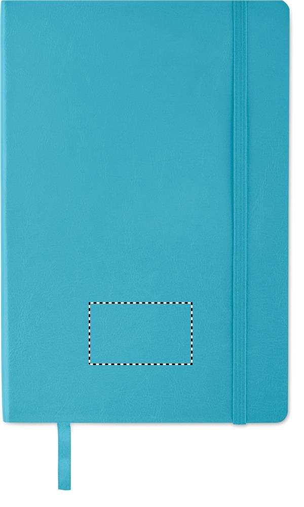 Fester Einband, ca. 80 Blatt kariertes Papier, mit elastischem Verschluss- und LesebandSuchbegriffe: NotizbuchMaße: 140 x 90 x 13 mmGewicht: 104 gMaterial: PVC, PapierVeredelung: Siebdruck, DigitaldruckDruckcodes: S/B (2), D/DBVeredelung 1------------Platzierung: Vorderseite (1)Druckfläche: 70 x 120 mmDruckart: SiebdruckDruckgruppe, Druckcode: B, S/BDruckfarben max.: 2Veredelung 2------------Platzierung: Rückseite (2)Druckfläche: 44 x 120 mmDruckart: SiebdruckDruckgruppe, Druckcode: B, S/BDruckfarben max.: 2Veredelung 3------------Platzierung: Vorderseite (1)Druckfläche: 87 x 137 mmDruckart: DigitaldruckDruckgruppe, Druckcode: DB, D/DB