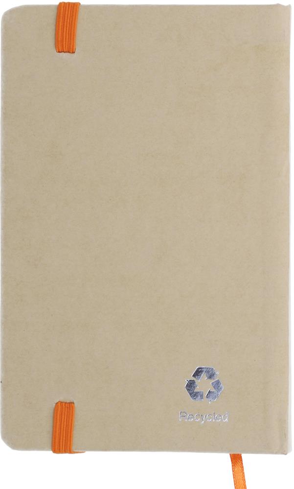 DIN A6 Notizbuch mit gebundenem Hard Cover aus recyceltem Papier. 96 Blatt (192 Seiten) Blanko-Recyclingpapier. Elastisches Verschlussband und Lesebändchen.Material: Recyceltes PapierMaße: 14x9x1,4 cmGewicht: 0.108 kgVeredelung: Bestickung, Bedruckung, BeflockungHandling/Farbcodes: Z/03, 04, 05, 10, 48, 06Druckposition: FRONTDruckmaße: 50 x 80 mmDrucktechniken: B, P4, PD3, DLDruckposition: BACKDruckmaße: 50 x 80 mmDrucktechniken: DL, B, P4, PD3Druckposition: FRONT PDDruckmaße: 70 x 120 mmDrucktechniken: PD3, DLDruckposition: BACK PDDruckmaße: 50 x 120 mmDrucktechniken: DL, PD3