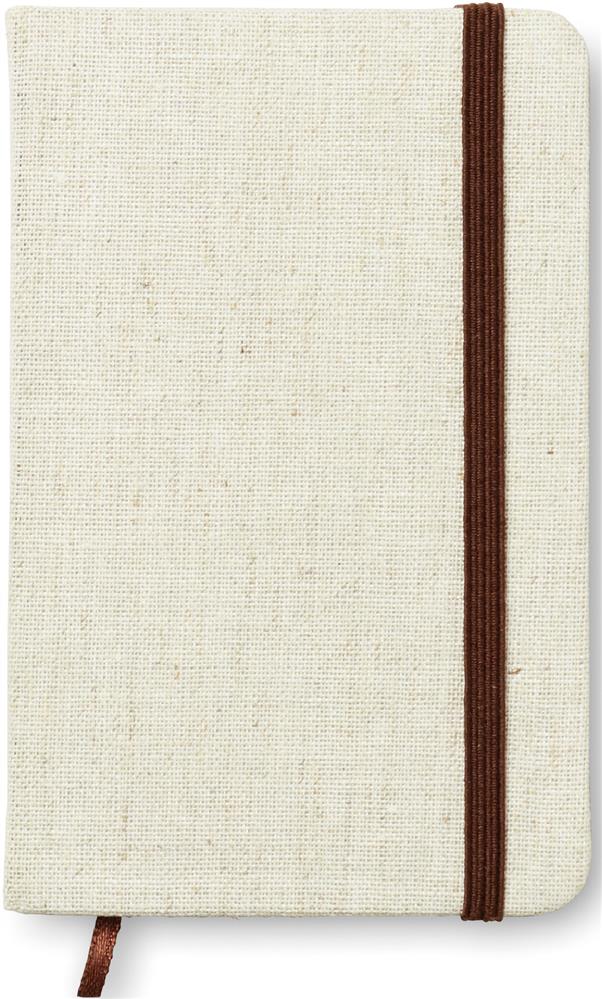 DIN A6 Notizbuch mit gebundenem Hard Cover aus Canvas. 96 Blatt (192 Seiten) liniertes Recyclingpapier. Elastisches Verschlussband und Lesebändchen.