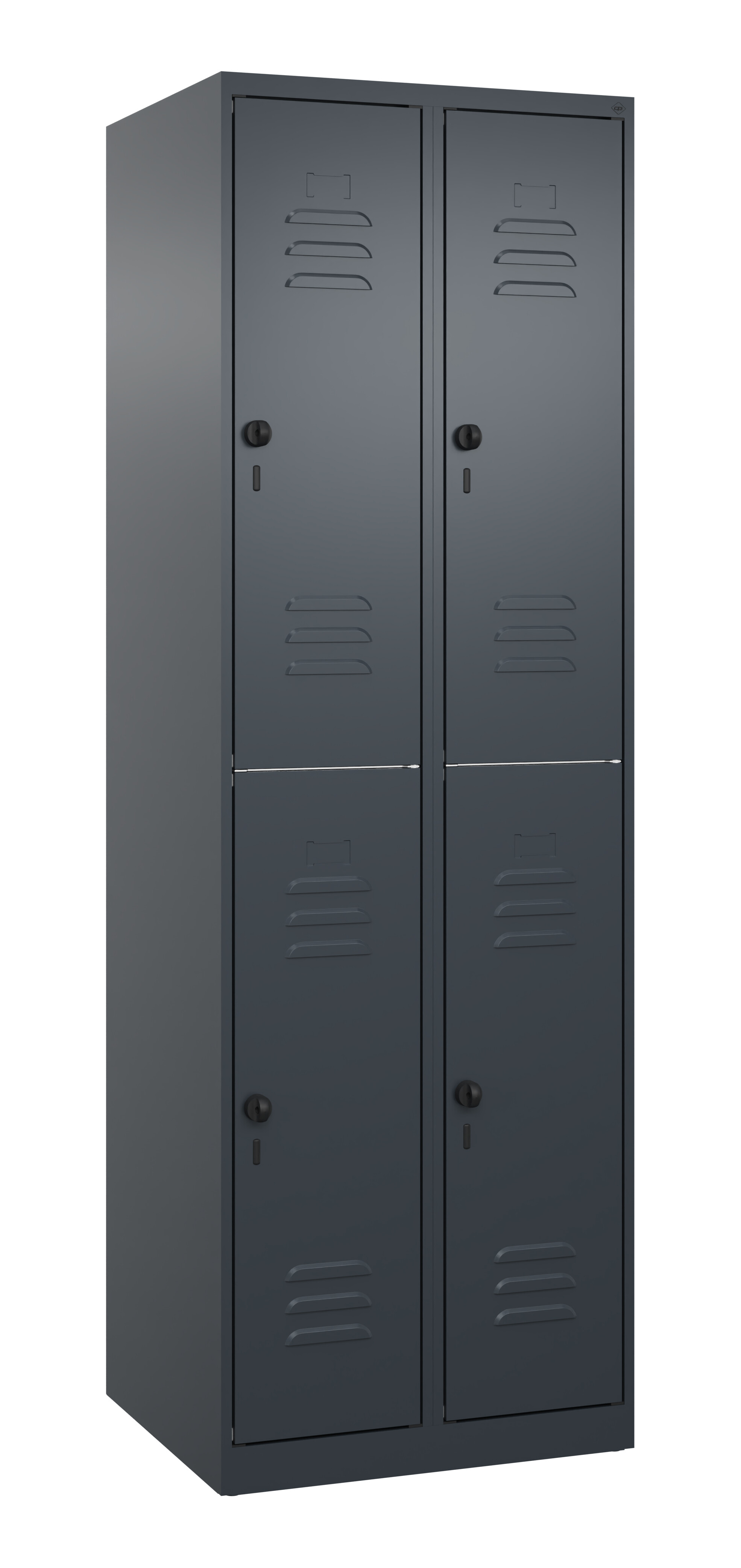 Doppelstock-Spind Classic Plus, 4 Fächer, 1850x600x500mm RAL 7016 Anthrazitgrau RAL 7016 Anthrazitgrau