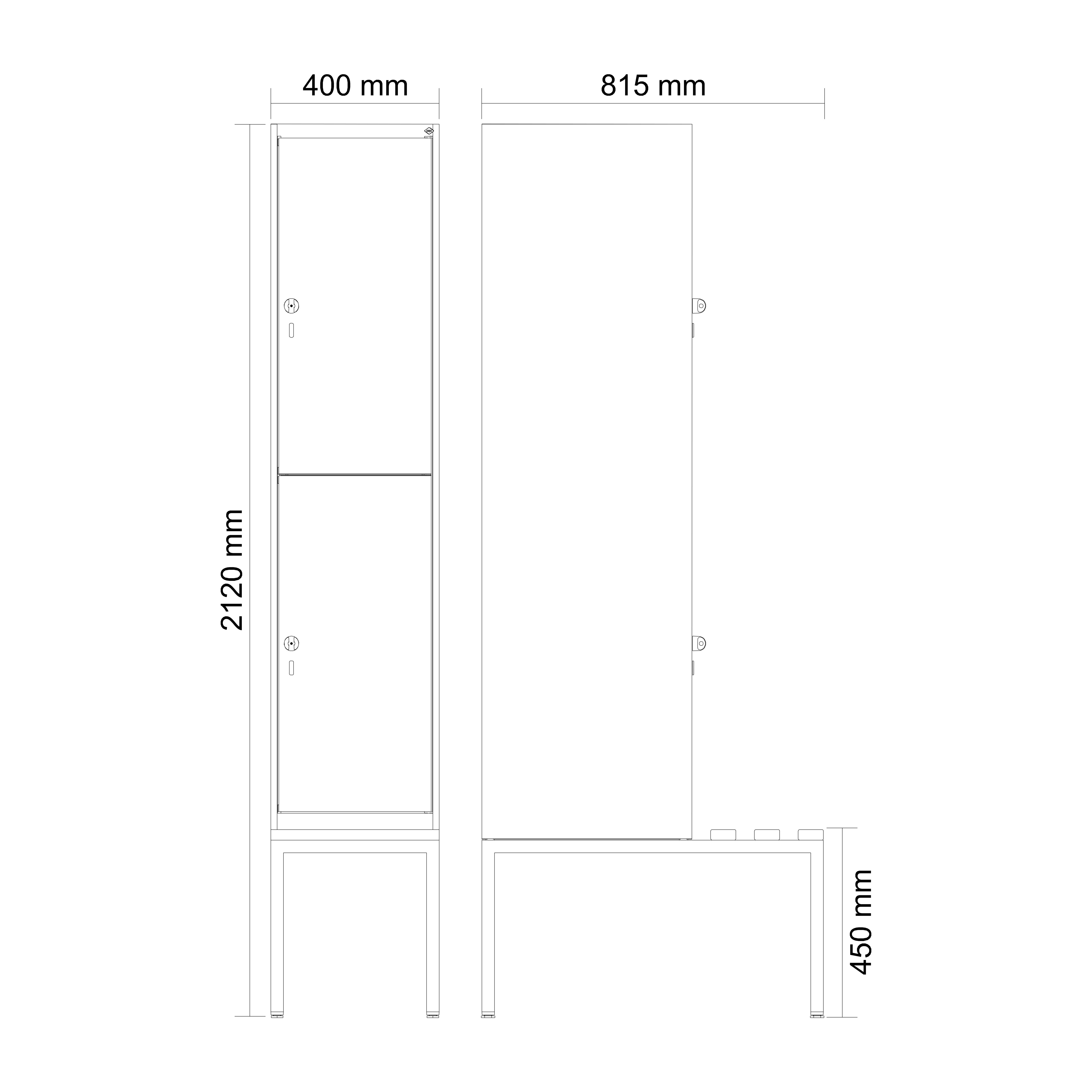 Produktinformationen "Doppelstock-Spind Classic Plus, Bank, 2 Fächer, 2120x400x815mm"