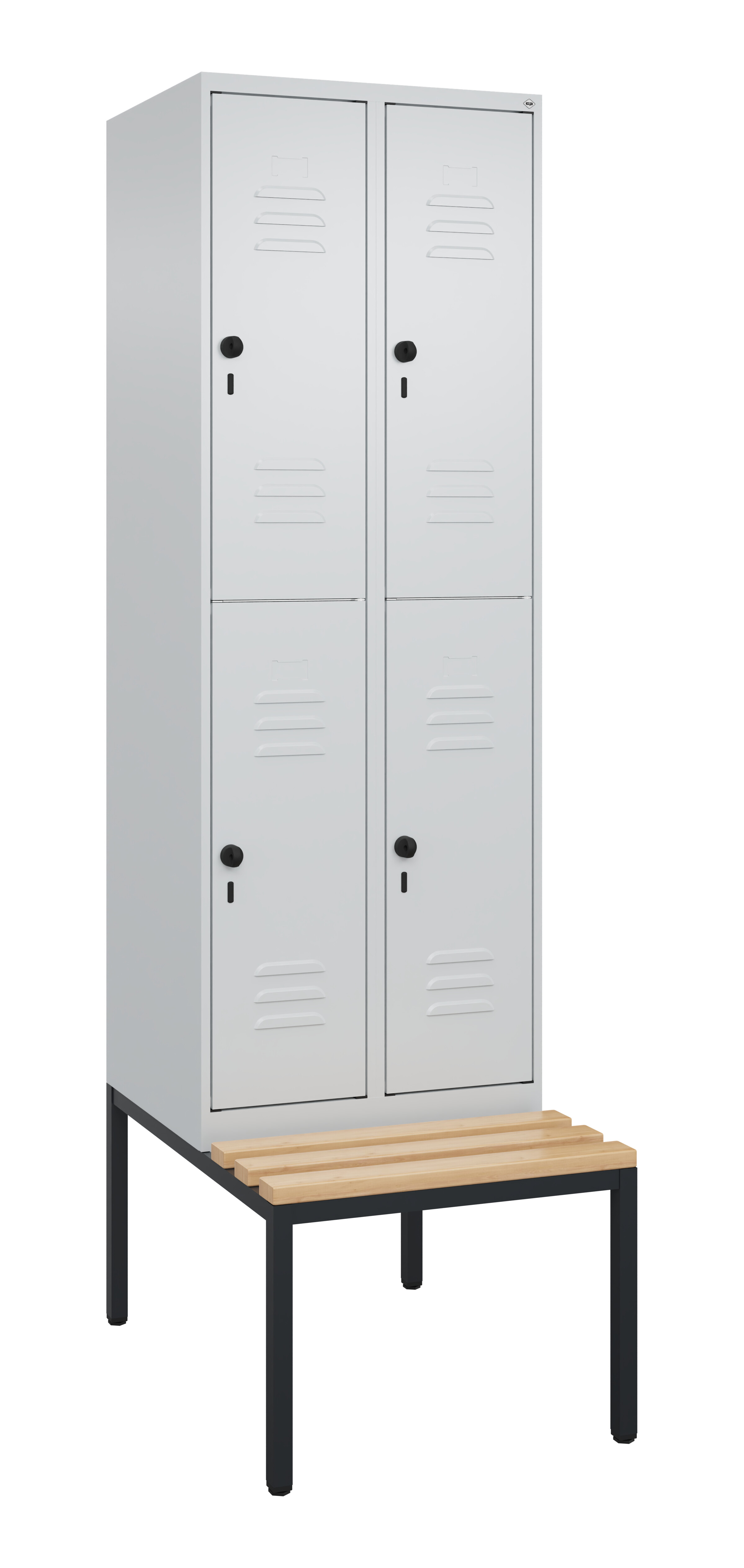 Doppelstock-Spind Classic Plus, Bank, 4 Fächer, 2120x600x815mm RAL 7035 Lichtgrau RAL 7035 Lichtgrau