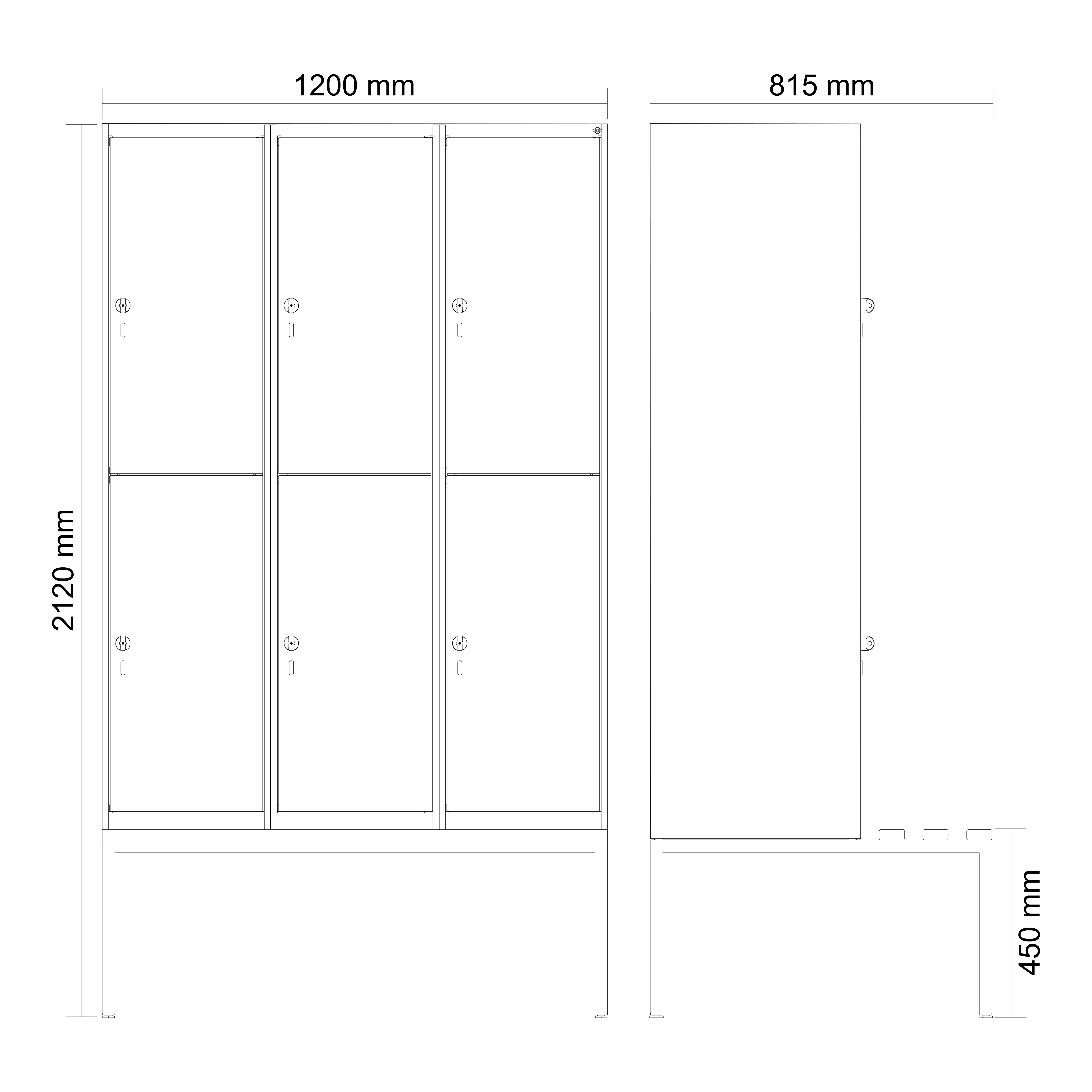 Produktinformationen "Doppelstock-Spind Classic Plus, Bank, 6 Fächer, 2120x1200x815mm"
