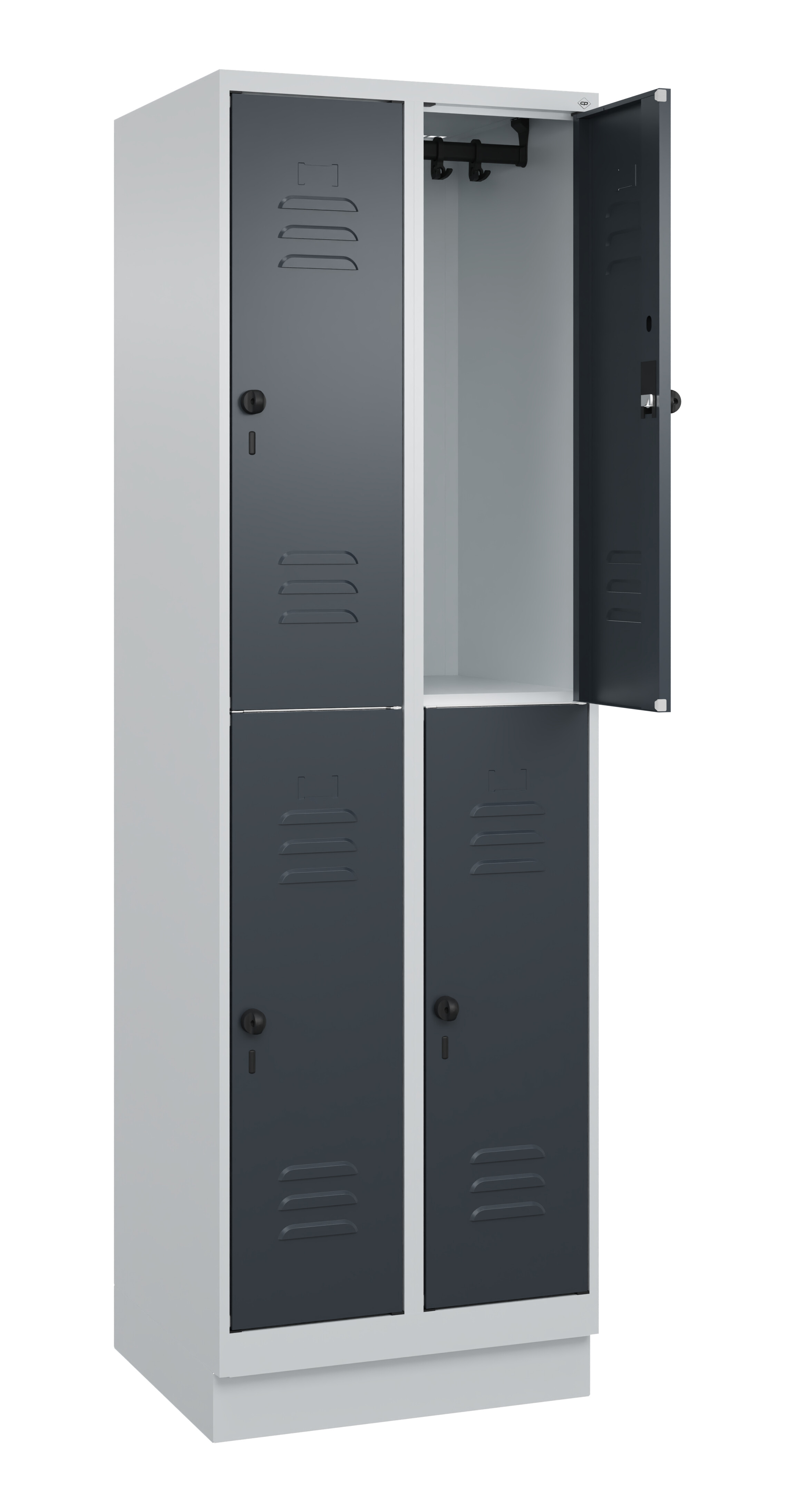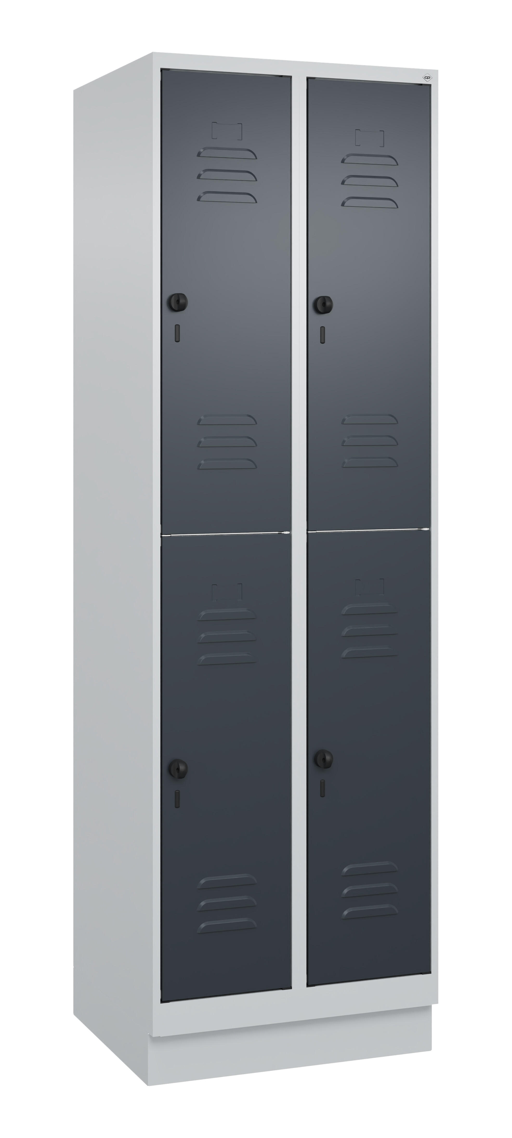 Doppelstock-Spind Classic Plus, Sockel, 4 Fächer, 1950x600x500mm RAL 7016 Anthrazitgrau RAL 7035 Lichtgrau