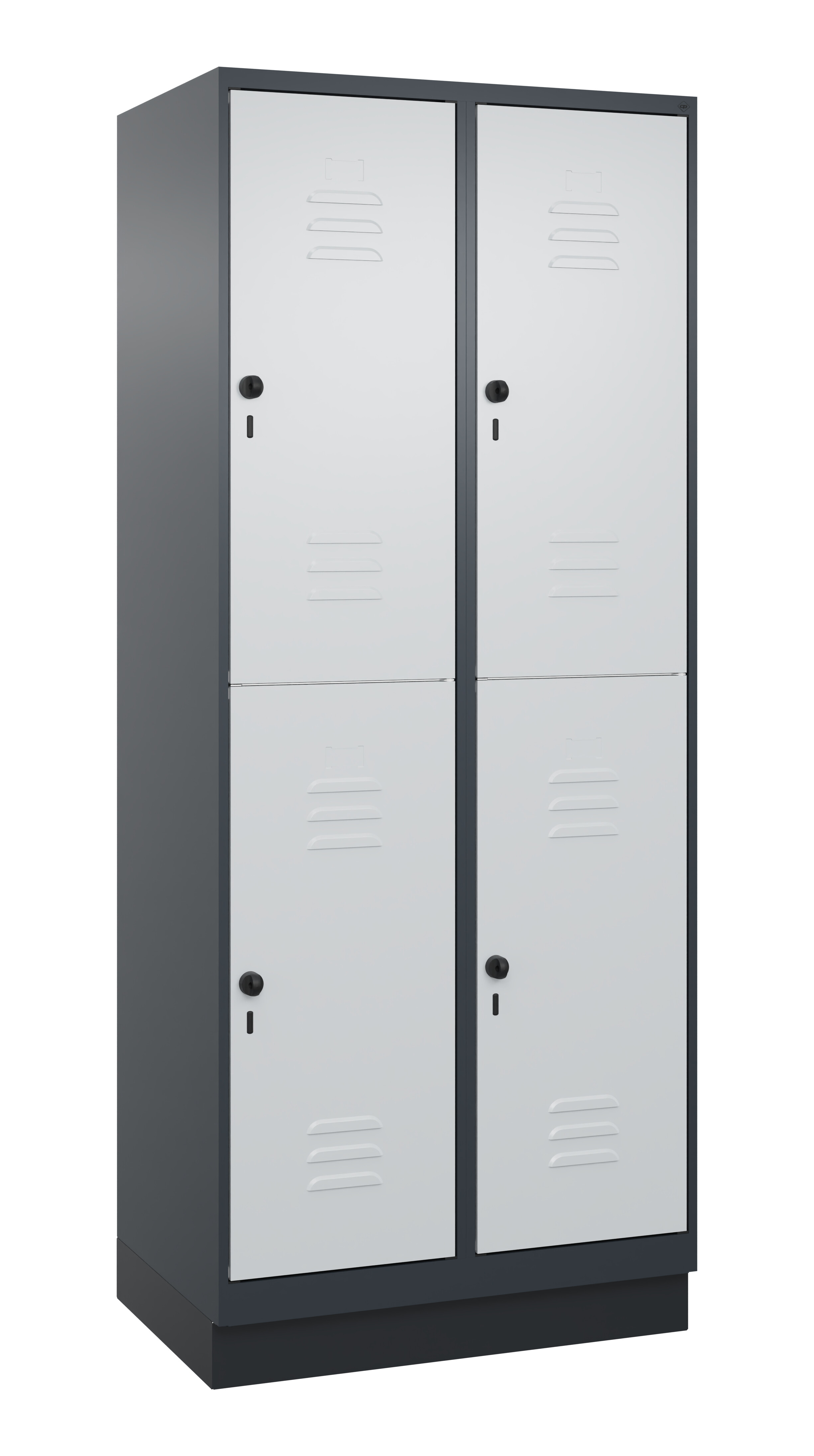 Doppelstock-Spind Classic Plus, Sockel, 4 Fächer, 2080x800x500mm RAL 7035 Lichtgrau RAL 7016 Anthrazitgrau