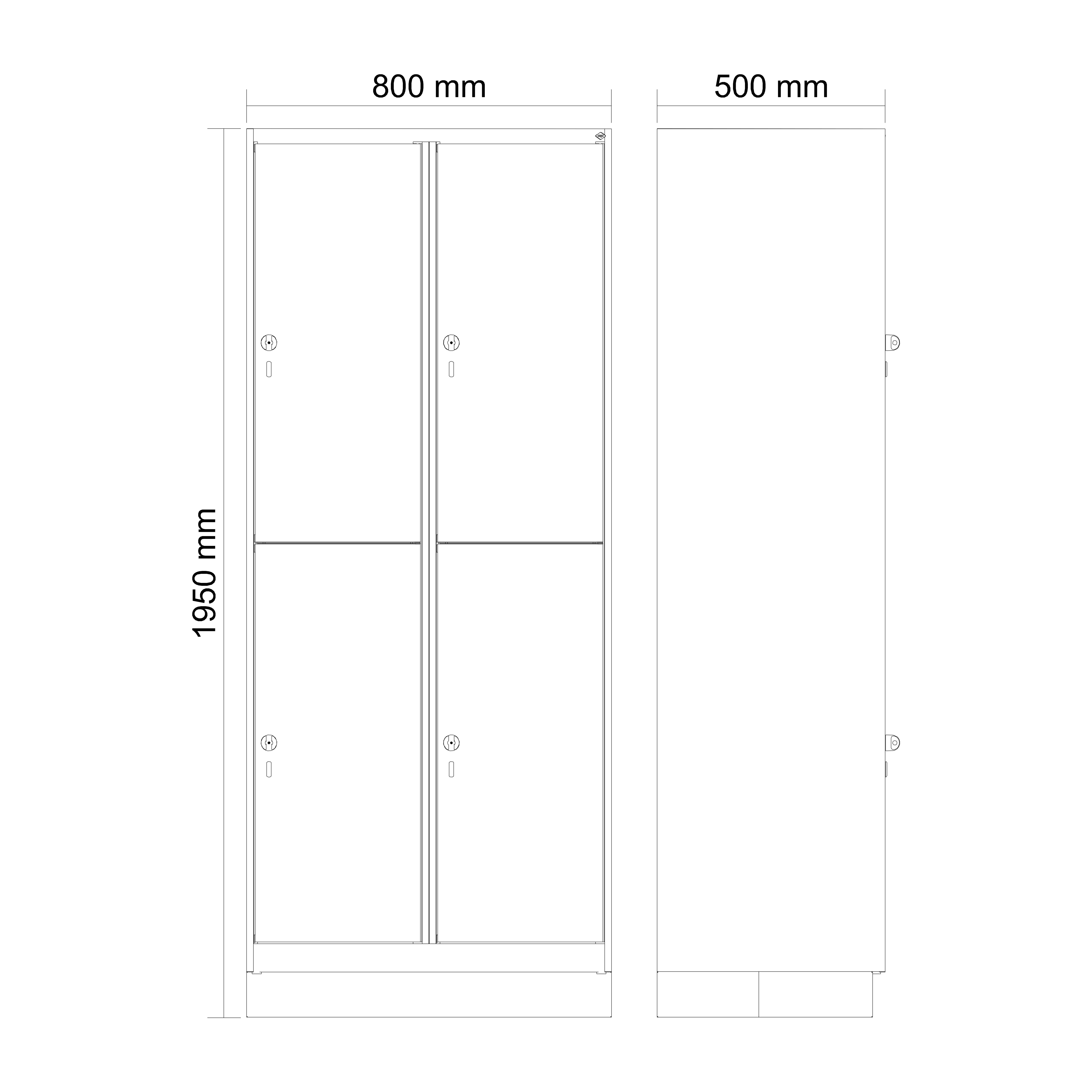 Produktinformationen "Doppelstock-Spind Classic Plus, Sockel, 4 Fächer, 2080x800x500mm"