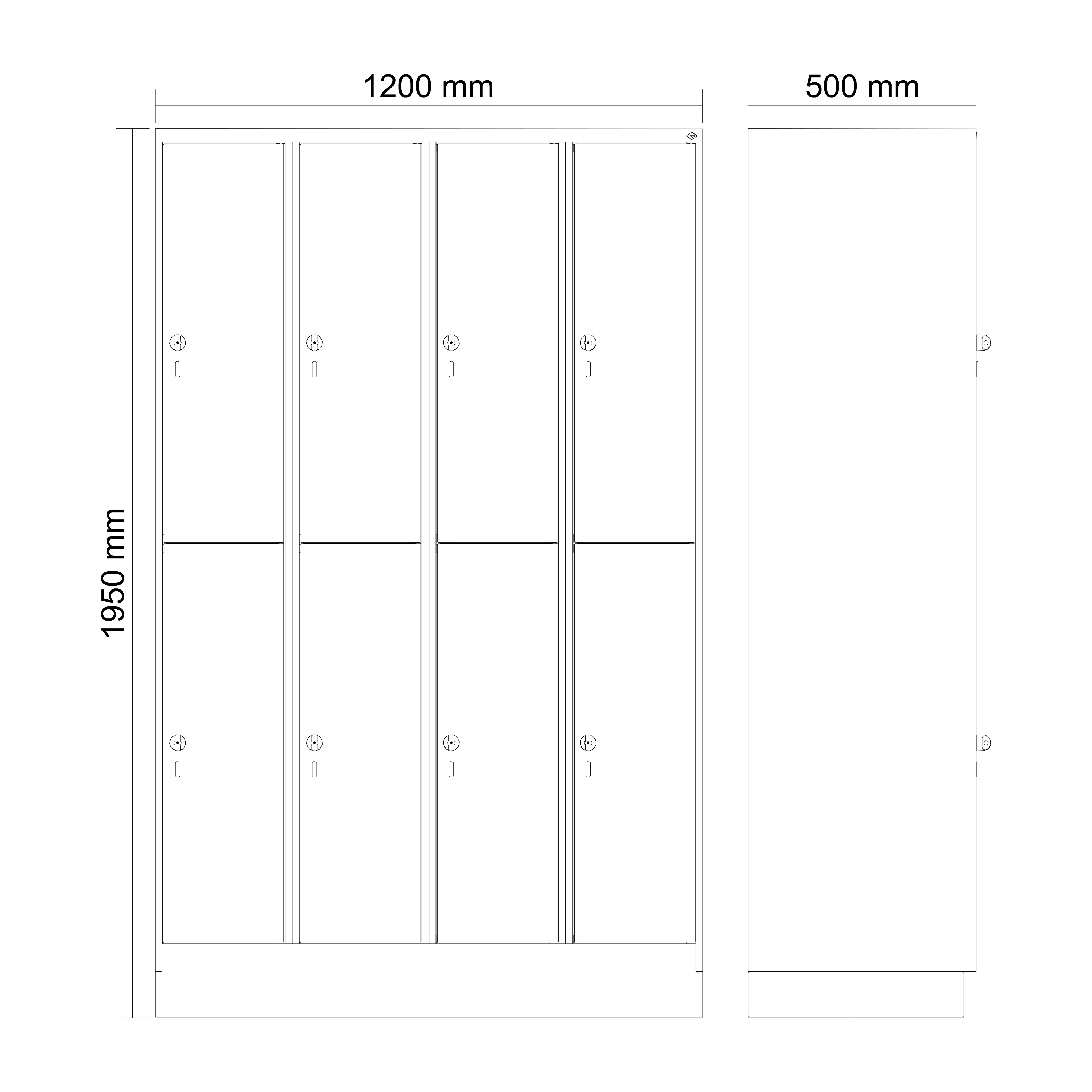Produktinformationen "Doppelstock-Spind Classic Plus, Sockel, 8 Fächer, 1950x1200x500mm"