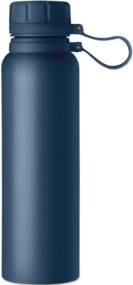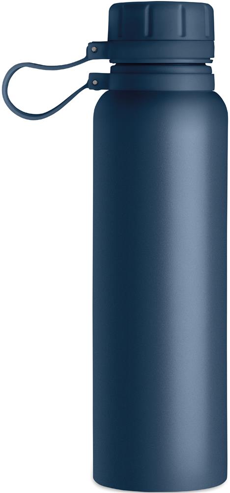 Doppelwandige Isolierflasche mit Schraubverschluss und Schlaufe aus Silikon. Edelstahl. Füllmenge: 780 ml.