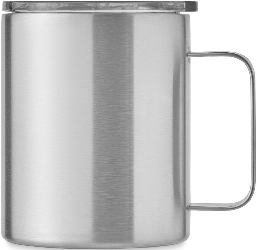 Doppelwandiger Trinkbecher aus recyceltem Edelstahl (90 % recycelter Edelstahl und 10 % Edelstahl) mit Schiebedeckel. Füllmenge: 300 ml.