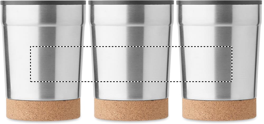 Doppelwandiger Becher aus Edelstahl mit PP-Innenseite. Der Boden ist mit Kork abgesetzt. Schiebedeckel mit Trinköffnung. Auslaufsicher. Füllmenge: 300 ml.Material: Edelstahl Maße: Ø8.5x12cmGewicht: 0.22 kgVeredelung: Bestickung, Bedruckung, BeflockungHandling/Farbcodes: B/03, 06, 16Druckposition: 360Druckmaße: 250 x 60 mmDrucktechniken: RD3, RLDruckposition: ROUNDSCREENDruckmaße: 200 x 35 mmDrucktechniken: RS5Druckposition: FRONTDruckmaße: 35 x 35 mmDrucktechniken: L3, P5Druckposition: BACKDruckmaße: 35 x 35 mmDrucktechniken: L3, P5