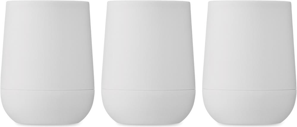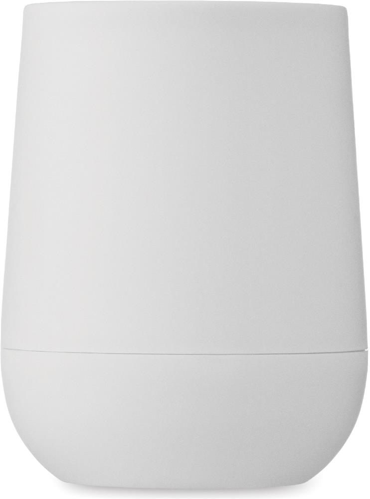 Doppelwandiger Becher aus PP. Trinköffnung im Deckel aus PS und ABS. Füllmenge: 300 ml.