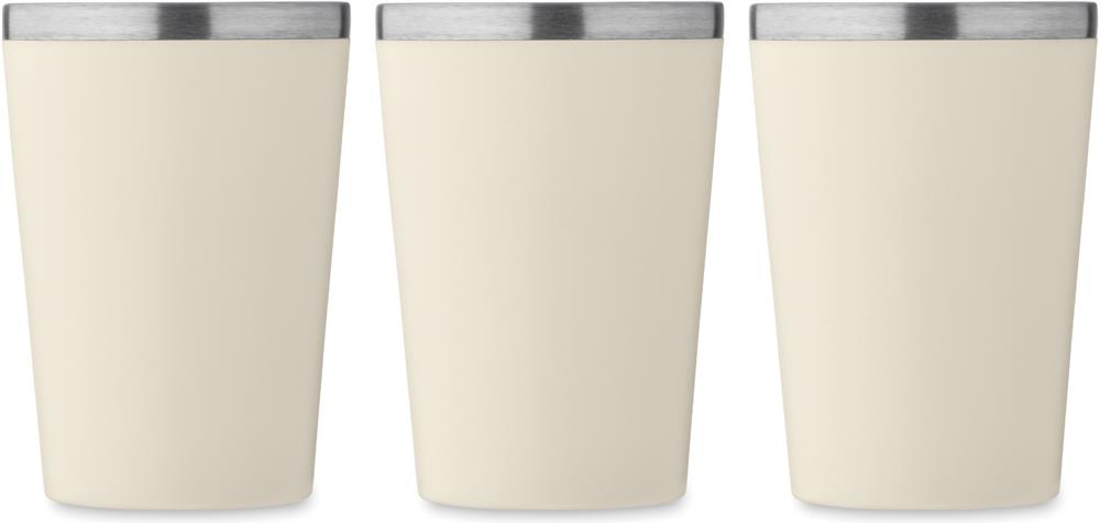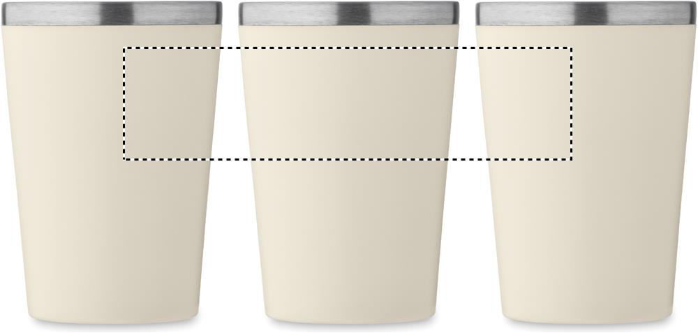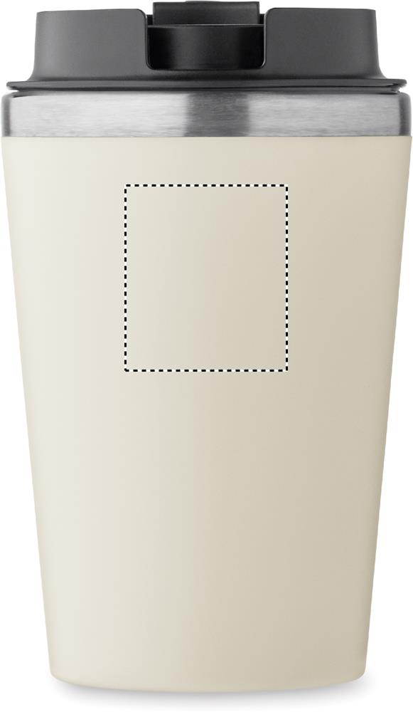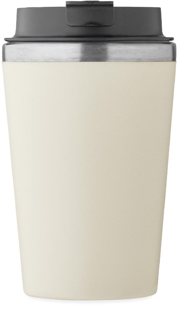 Doppelwandiger Trinkbecher. Äußere Schicht aus PP, Innenwand aus recyceltem Edelstahl (90 % recycelter Edelstahl und 10 % Edelstahl) mit keramischer Innenauskleidung. Auslaufsicher. Füllmenge: 350 ml.