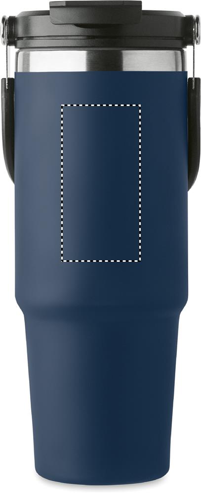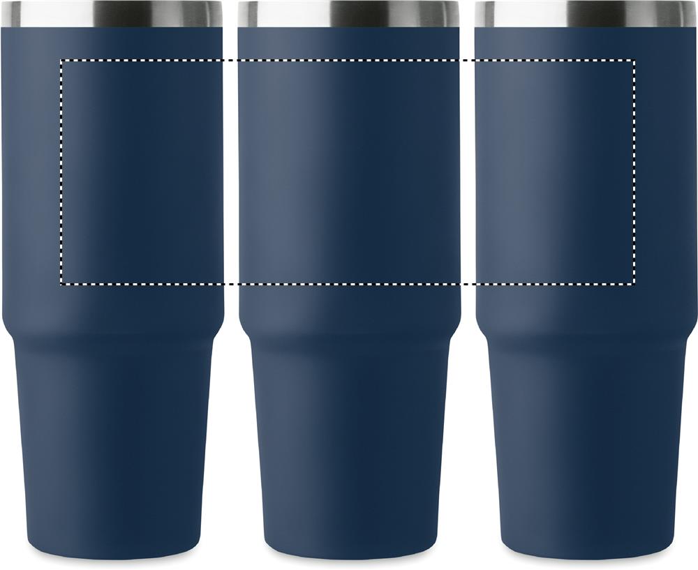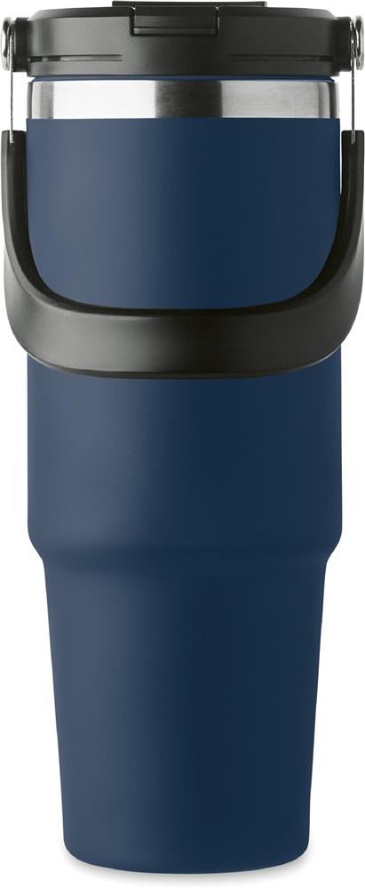 Doppelwandiger Trinkbecher aus recyceltem Edelstahl (90 % recycelter Edelstahl und 10 % Edelstahl). Verschluss mit integriertem Trinkhalm und klappbarer Trinköffnung. Füllmenge: 850 ml. Auslaufsicher.