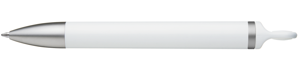 Weißer Kunststoff-Kugelschreiber mit farbigem Clip, blauschreibend.Maße: ø10×138 mmSchreibgerät-Typ: KugelschreiberSchreibgerät-Mechanik: DruckmechanikSchreibfarbe: BlauMinentyp: Normale MineLinienstärke: 1 mmMaterial: Kunststoff (ABS)Veredelungsposition 1: Korpus - rechts vom ClipTechnologie: UV-LED-Druck - EinzelnamenDurchmesser: 0Druckcode: NUVATechnologie: TampondruckMaximale Farben: 4Durchmesser: 0Druckcode: P0Technologie: TampondruckMaximale Farben: 1Durchmesser: 0Druckcode: P1Technologie: UV LED DruckDurchmesser: 0Druckcode: UVAVeredelungsposition 2: Korpus - links vom ClipTechnologie: UV-LED-Druck - EinzelnamenDurchmesser: 0Druckcode: NUVATechnologie: TampondruckMaximale Farben: 4Durchmesser: 0Druckcode: P0Technologie: TampondruckMaximale Farben: 1Durchmesser: 0Druckcode: P1Technologie: UV LED DruckDurchmesser: 0Druckcode: UVAVeredelungsposition 3: KlipTechnologie: TampondruckMaximale Farben: 4Durchmesser: 0Druckcode: P0Veredelungsposition 4: Korpus - in Verlängerung vom ClipTechnologie: TampondruckMaximale Farben: 4Durchmesser: 0Druckcode: P0